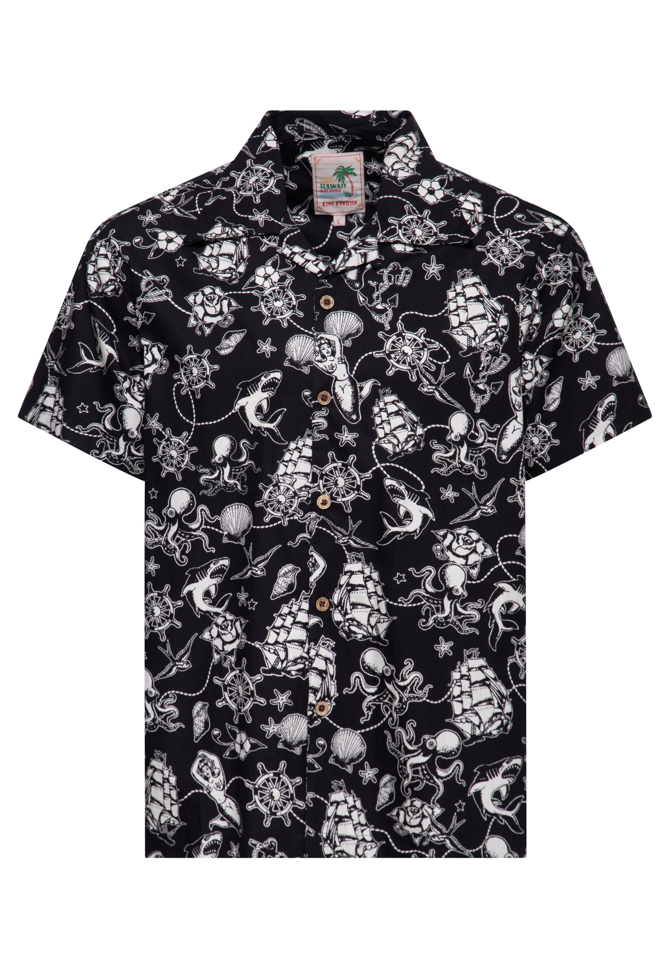 ♕ King Kerosin Hawaiihemd mit Oldschool Sailor-Tattoo Motiven
