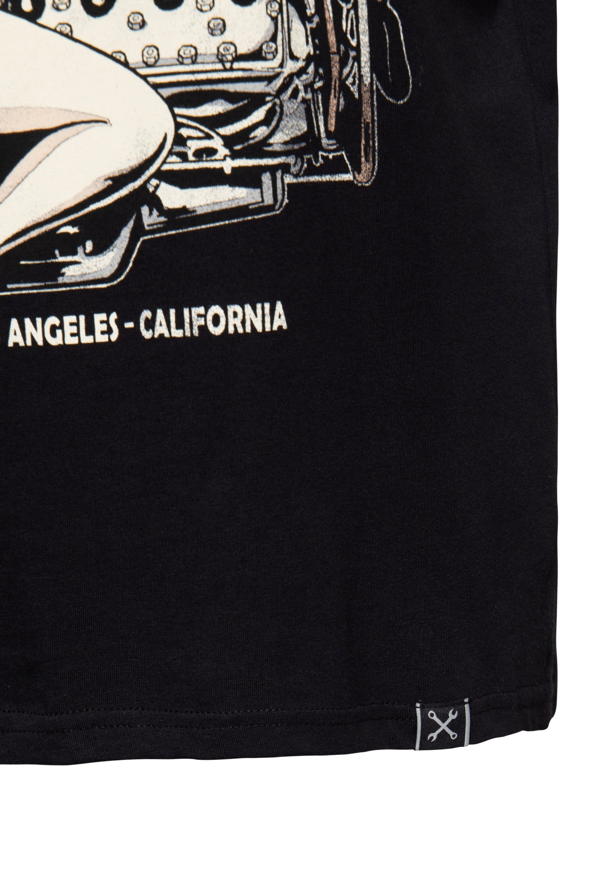 Das Classic T-Shirt von King Kerosin überzeugt mit seinem sexy Pin-Up-Motiv in der Front. Ein enger Rundhalsausschnitt und kurze Ärmel runden den sommerlichen Look gekonnt ab. Des Weiteren überzeugt es aber auch mit seiner tollen Baumwollqualität und seinem bequemen Regular Fit. Kombiniert zu Jeans und Sneaker entsteht ein legerer Alltagslook; wenn Du es etwas tougher magst, dann kombiniere es doch zu Deiner Lieblings-Lederjacke und derben Boots.
