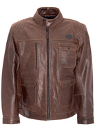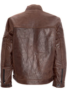 Coole Lederjacke für Motorradfans von King Kerosin. Logopatches an Arm und Brust und grobe Reißverschlussdetails nehmen einen gedanklich schon mit auf die nächste Tour. Im Rückteilfutter und in den Ärmeln sind Fächer eingenäht in denen sich ganz easy Standard Schulter- und Rückenprotektoren nachrüsten lassen. Doch auch modisch macht die Jacke im Alltag richtig was her: das matte Büffelleder, die coolen Metalldruckknöpfe und Ziersteppungen sind Highlights der Jacke, die den Unterschied machen. Drei aufgesetzte und eine Reißverschlusstasche im Vorderteil sorgen für den nötigen Stauraum, zusätzlich findet sich im Futter noch eine Reißverschlusstasche für Geldbeutel oder Schlüssel. Saum und Ärmel sind durch zusätzliche Druckknöpfe Weiten regulierbar. Teilungsnähte und für den Biker Stil typische Steppungen an Ellenbogen und Schulter runden das coole Design gekonnt ab und schützen zusätzlich mit innen liegenden Verstärkungen. Stilecht kombiniert mit Jeans und Boots wird die Lederjacke von King Kerosin zum langlebigen Lieblingsstück auf dem Bike oder in der Freizeit.