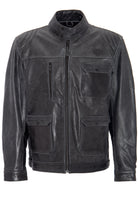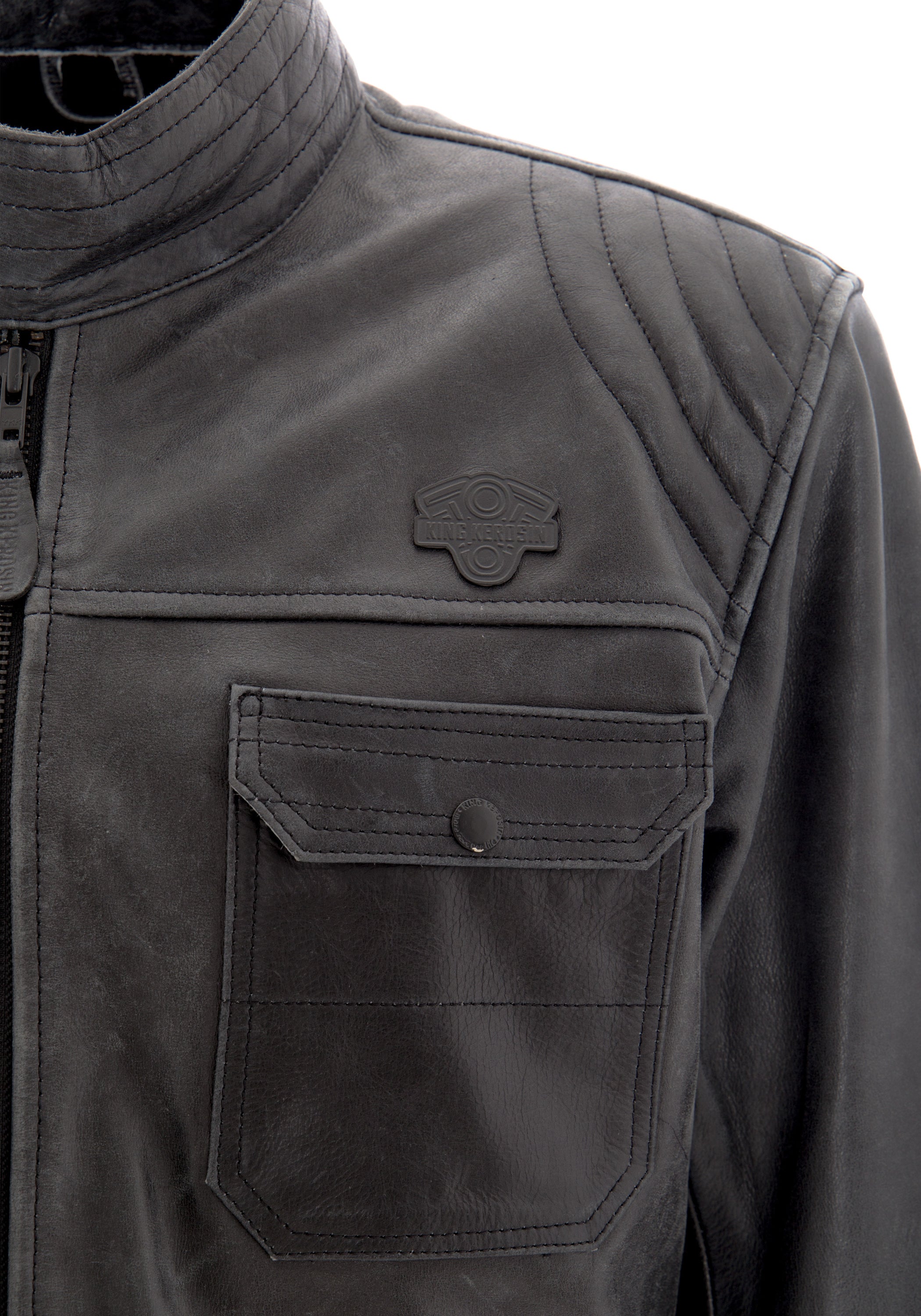 Coole Lederjacke für Motorradfans vom Kultlabel King Kerosin! Logopatches an Arm und Brust und grobe Reißverschlussdetails nehmen einen gedanklich schon mit auf die nächste Tour. Im Rückteilfutter und in den Ärmeln sind Fächer eingenäht in denen sich ganz easy Standard Schulter- und Rückenprotektoren nachrüsten lassen. Doch auch modisch macht die Jacke im Alltag richtig was her: das matte Büffelleder , die coolen Metalldruckknöpfe und natürlich der Aufdruck im Rücken sind Highlights der Jacke, die den Unterschied machen. Drei aufgesetzte und eine Reißverschlusstasche im Vorderteil sorgen für den nötigen Stauraum, zusätzlich findet sich im Futter noch eine Reißverschlusstasche für Geldbeutel oder Schlüssel. Saum und Ärmel sind durch zusätzliche Druckknöpfe Weiten regulierbar. Teilungsnähte und für den Biker Stil typische Steppungen an Ellenbogen und Schulter runden das coole Design gekonnt ab und schützen zusätzlich mit innenliegenden Verstärkungen. Stilecht kombiniert mit Jeans und Boots wird die Lederjacke von King Kerosin zum langlebigen Lieblingsstück auf dem Bike oder als Freizeitlook.