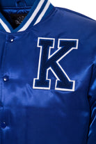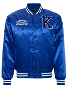 Die kultige College Jacke von King Kerosin präsentiert sich mit Applikationen auf Brust und Rücken und den klassisch gestreiften Rippabschlüssen. Die leicht glänzende Satinware ist innen leicht gefüttert und so auch für kältere Temperaturen geeignet. Ein Style mit Retro Charme, das am Besten zu clean gewaschenen Jeans funktioniert.