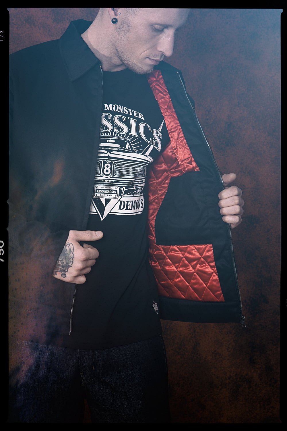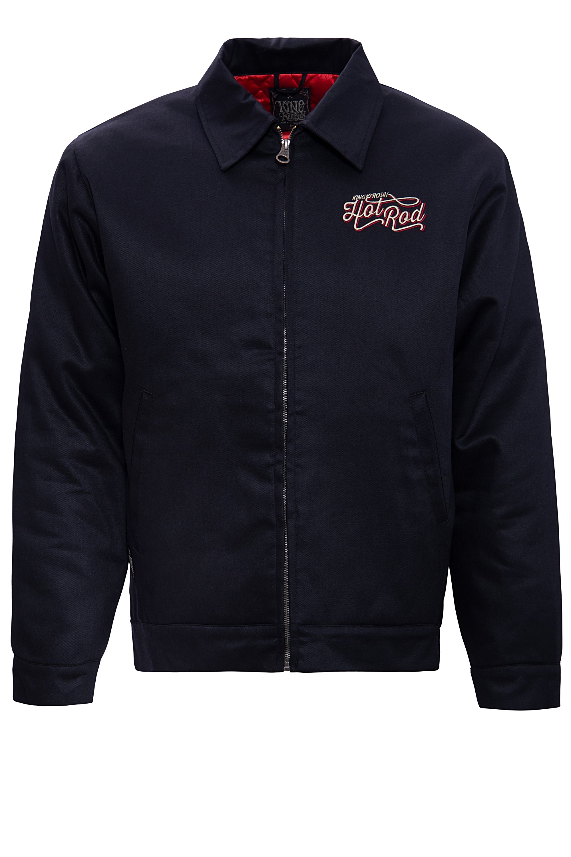 Mit dieser coolen Jacke im Workerstyle von King Kerosin sind Sie perfekt für den Winter ausgestattet. Nicht nur mit der hochwertigen Verarbeitung und der guten Qualität des Materials kann sie beeindrucken, sondern auch mit ihrem Vintage-Desin. Das feste, robuste Gewebe schützt vor Wind und das Wärmehaltevermögen wird durch das komplett abgefütterte wattierte Steppfutter maximiert. Die Eingrifftaschen und die Innentasche bieten genügend Stauraum für Kleinigkeiten wie Schlüssel, Handy und Feuerzeug. Die Workerjacke verfügt über einen hochgeschlossenen Kragen und einen markanten Reißverschluss in der vorderen Mitte. Für den richtigen Sitz kann der Bund mit Hilfe von Knopf und Lasche individuell angepasst werden. Das absolute Highlight der Workerjacke ist die Stickerei im Rücken und auf der Brust, die vor allem Hot Rod Fans anspricht. Ein toller Begleiter für den Alltag zu Jeans und Pullover oder T-Shirt!