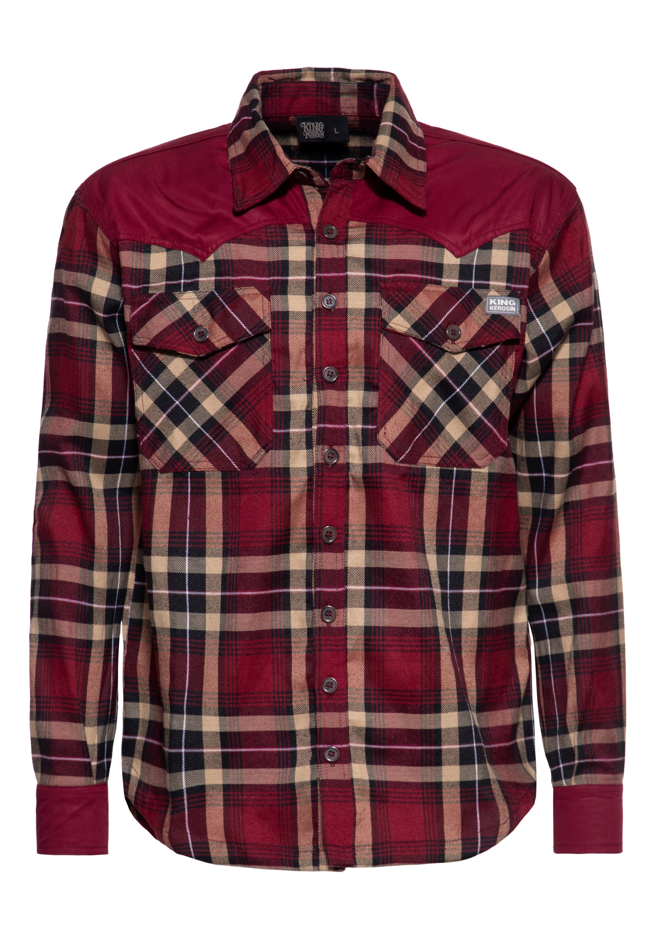 Dieses karierte Langarmhemd von King Kerosin bringt authentischen Western-Style in deinen Alltag! Das klassische Karomuster kombiniert mit der kontrastierenden Schulterpasse verleiht dem Hemd einen markanten Look. Zwei Brusttaschen mit Knopfverschluss und eine 2-Knopf-Manschette unterstreichen den praktischen Charakter. Dank Regular Fit, Rückenpasse und abgerundetem Saum sitzt das Hemd bequem und lässt sich vielseitig tragen – ob offen über einem Shirt oder zugeknöpft als eigenständiges Statement.