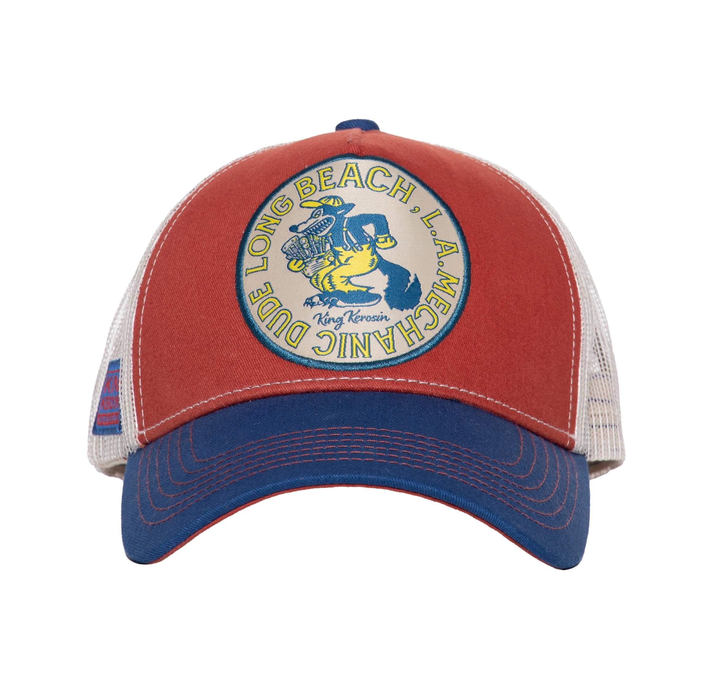 Ob du in der Garage schraubst oder einfach deinen Style auf die Straße bringst – mit dieser Trucker Cap von King Kerosin bist du Teil der "Mechanic Dude"-Crew. Der auffällige Stickpatch auf der Front zeigt einen coolen Schrauber-Charakter im Retro-Design und bringt echtes Werkstatt-Feeling à la Long Beach, L.A. in deinen Look. Die Cap überzeugt mit klassischem Trucker-Shape, atmungsaktivem Mesh hinten und einem kontrastfarbenen Schirm. Für alle, die Öl im Blut und Stil im Kopf haben!