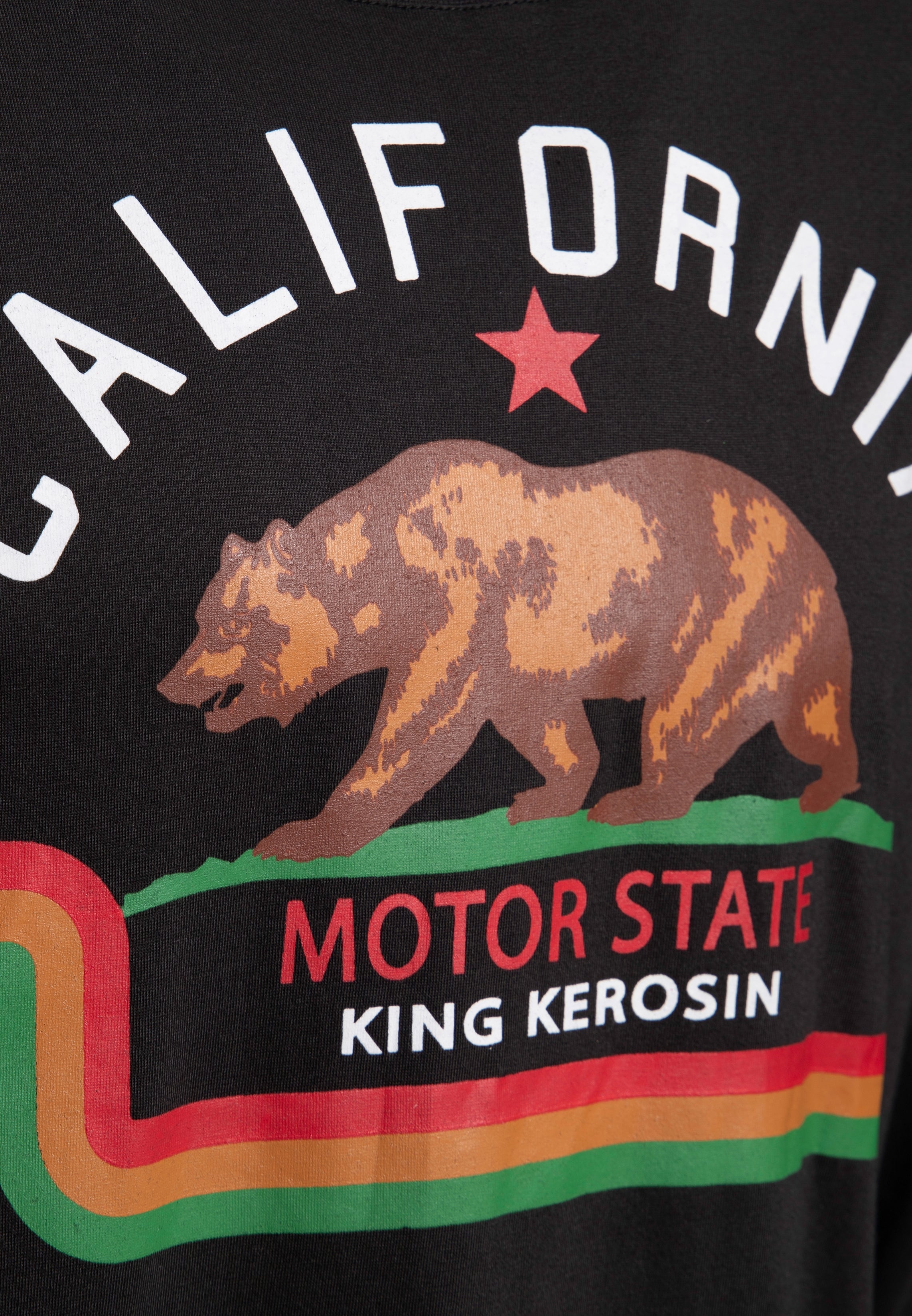Der Traum von Freiheit, festgehalten in einem Longsleeve von King Kerosin. Pure Baumwolle schmiegt sich wie eine zweite Haut an dich. Der leichte Stoff ist perfekt für die Übergangszeit – weder zu warm noch zu kühl. Der Rundhals mit gerippter Blende sitzt bequem, ohne einzuengen. Der auffällige Frontprint holt den kalifornischen Spirit direkt in deinen Alltag. Der stolze Bär, das Symbol für Stärke und Abenteuerlust, begleitet dich auf all deinen Wegen. Dieses schwarze Longsleeve von King Kerosin erzählt von Roadtrips entlang der Westküste, vom Rauschen der Wellen und der Weite des Himmels. Trage es und spüre die Freiheit. Werde Teil der Legende.