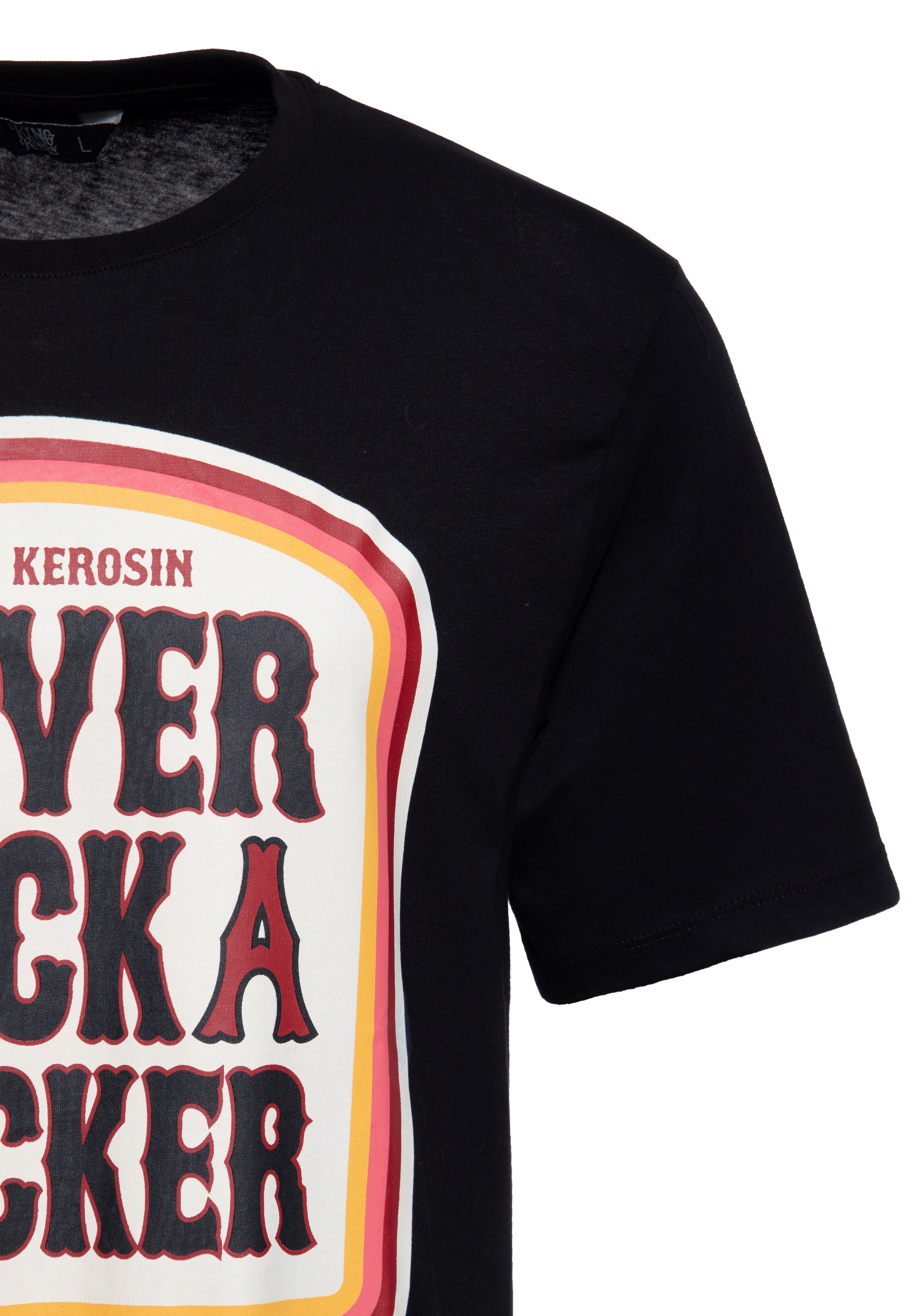 Kein Blatt vor dem Mund und keine halben Sachen – das King Kerosin T-Shirt mit dem Statement „Never Fuck A Fucker“ ist nichts für Weicheier. Mit seinem markanten Retro-Schriftzug bringt es die typische Portion Ironie und Attitüde auf den Punkt. Das Shirt aus reiner Baumwolle überzeugt durch seine weiche Haptik, den bequemen Regular Fit und den klassischen Rundhalsausschnitt. Ein authentisches Piece für alle, die klare Worte und kompromisslosen Style lieben.