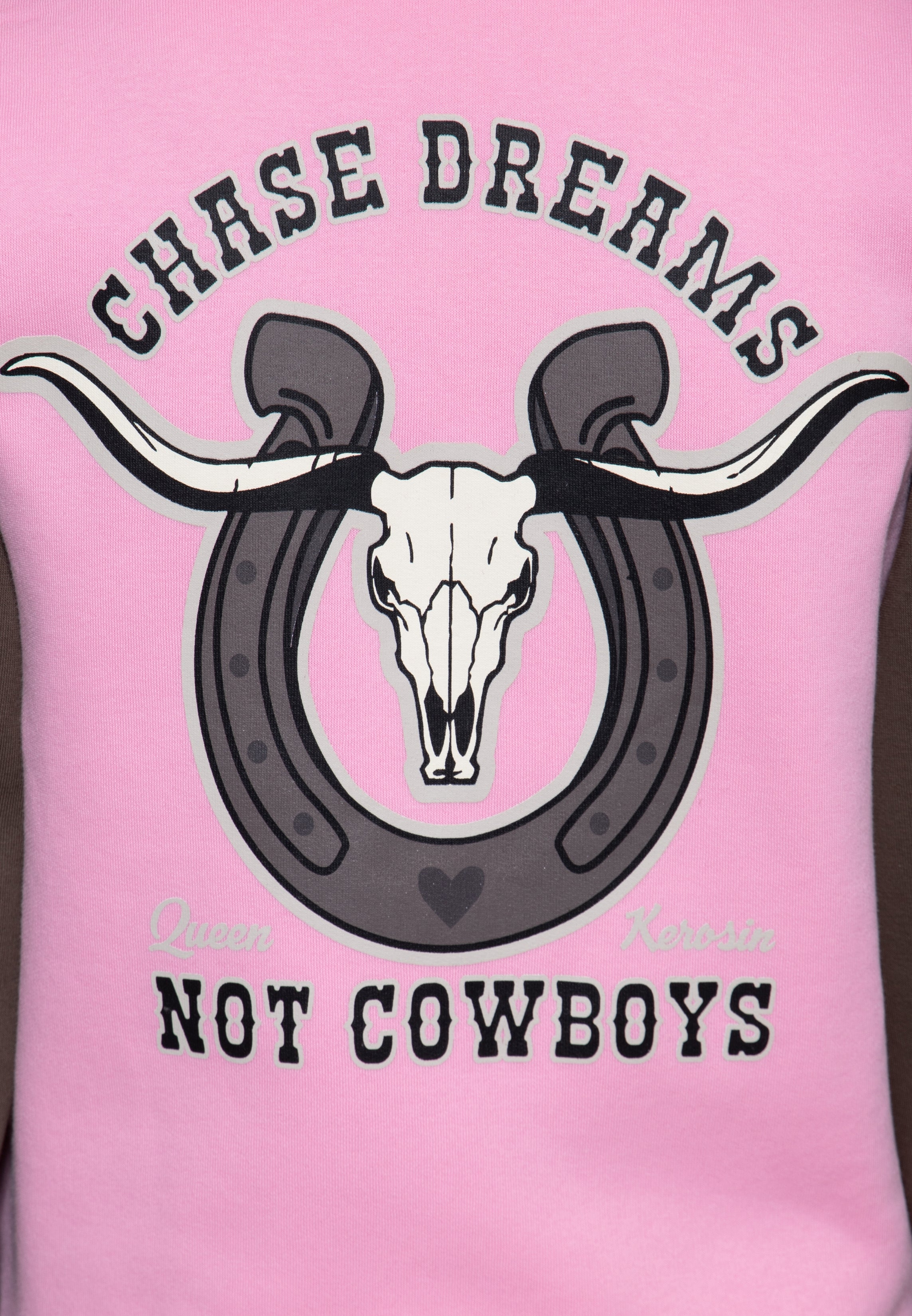 Kapuzensweatjacke 'Chase Dreams Not Cowboys' in Rosa