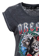 ♕ Queen Kerosin Enzym-Wash T-Shirt mit Sugar-Skull-Artwork