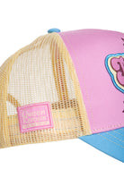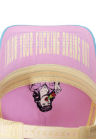 Zuckerfarben, freche Message: diese Queen Kerosin Trucker Cap bringt die perfekte Mischung aus frechem Statement, Retro-Charme und derben Details. Im Fokus steht der Stickpatch „ManEater“ auf der Front, eingerahmt von gestickten Sternen und dem blauen Schirm als coolem Farbkontrast. Highlight für alle, die genauer hinschauen: Unter dem Schirm wartet ein freizügiger Slogan und eine Pin-up-Illustration mit Eis im Vintage-Stil – frech, direkt, selbstbewusst. Der luftige Mesh-Einsatz hinten und das klassische Snapback-Design sorgen für Komfort bei heißem Kopf und klarem Style. Diese Cap schreit nicht nur Sommer – sie beißt sich rein.