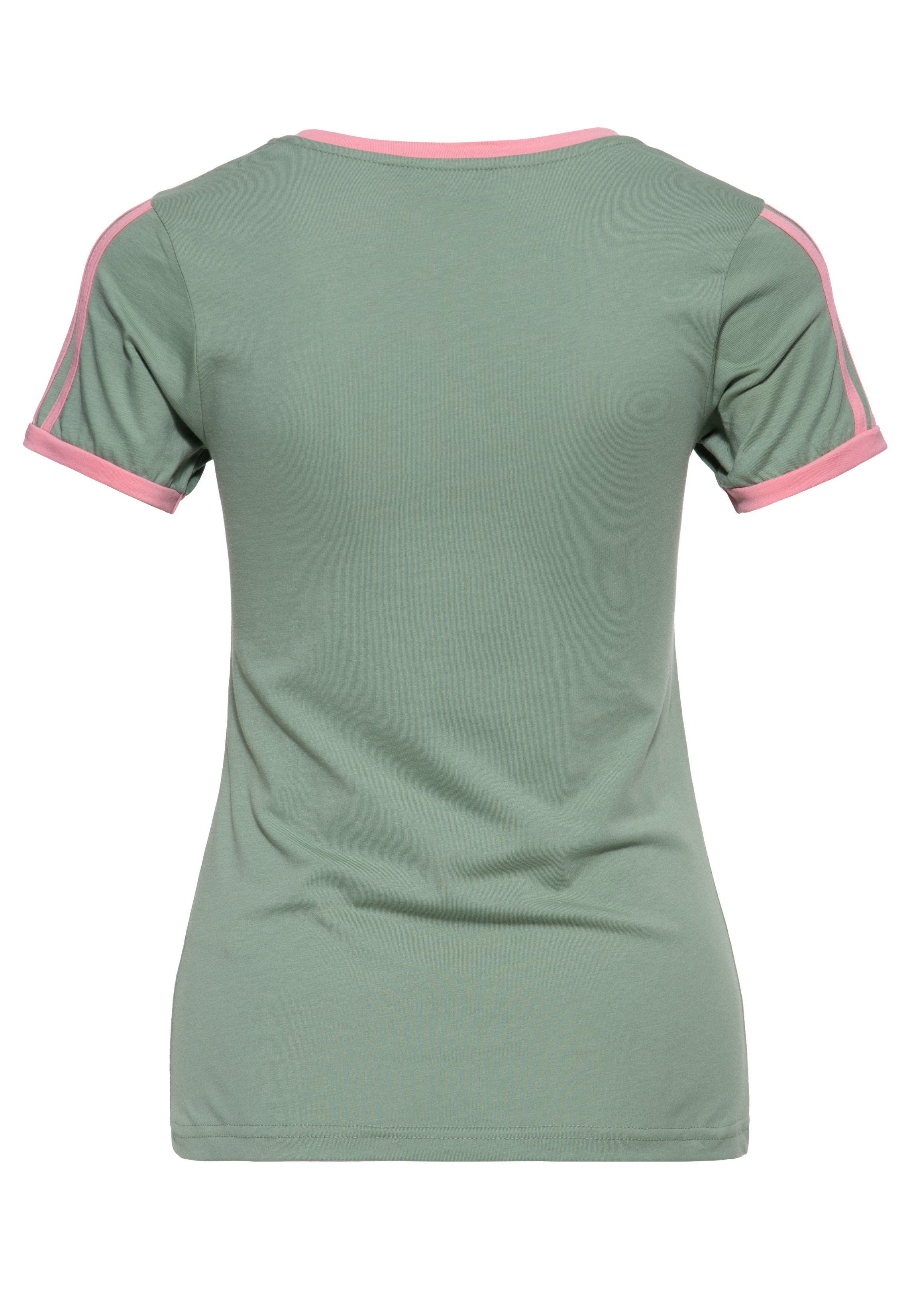 Dieses Queen Kerosin T-Shirt setzt mit dem „Queen of Fucking Everything“-Frontprint ein klares, selbstbewusstes Statement. Der retro Schriftzug wirkt plakativ und bewusst laut, während die sportlichen Kontrastdetails an Ausschnitt, Ärmeln und Schulterstreifen dem Look eine dynamische Note geben. Die kontrastierende Blende an Ausschnitt und Ärmeln greift den sportlich-grafischen Look typischer 70s-Shirts auf und verstärkt den Retro-Charakter des Designs. Die schmale Slim-Fit-Passform und der Rundhalsausschnitt sorgen für eine feminine Silhouette, die den starken Print klar in Szene setzt – kompromisslos, direkt und unübersehbar.