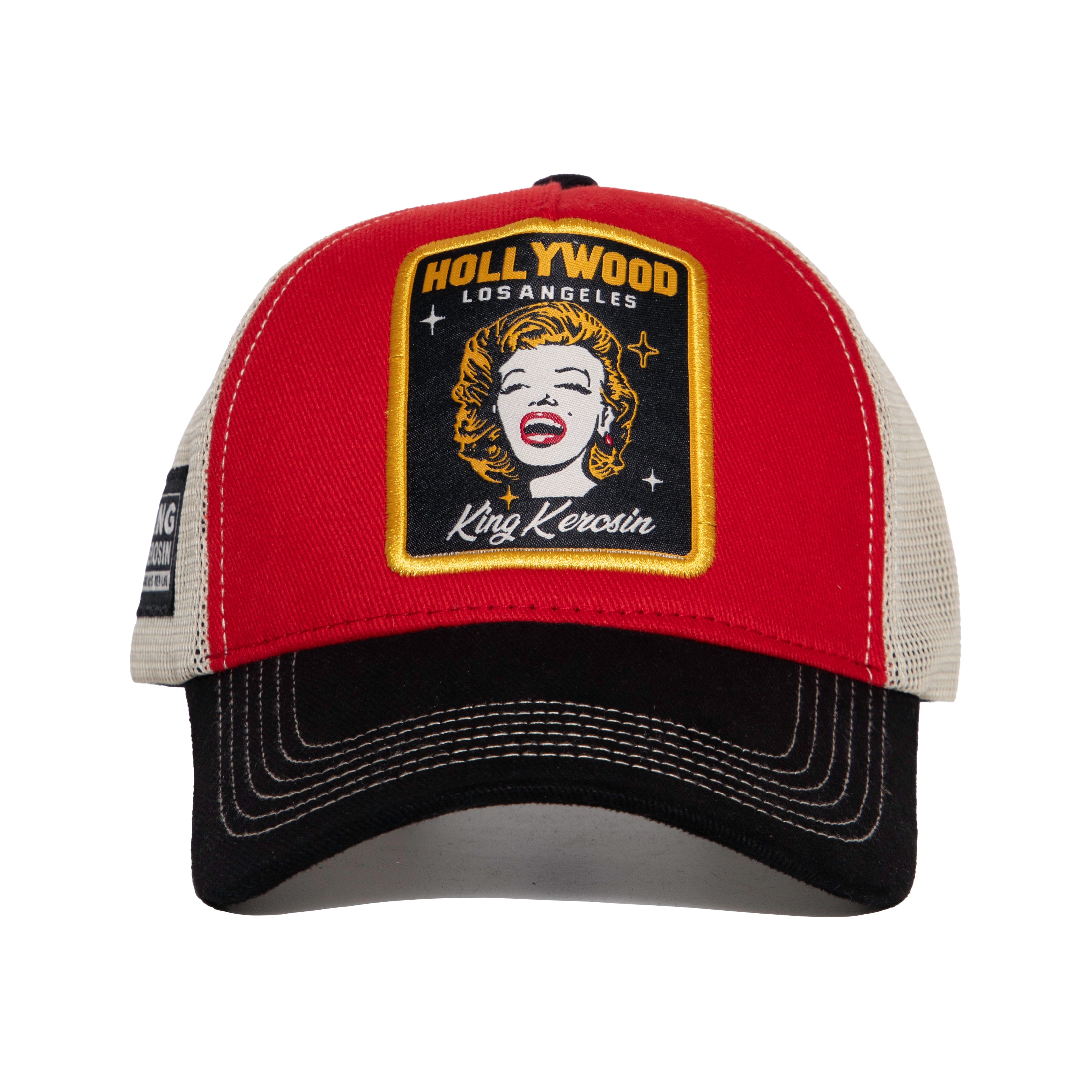 Hol dir das ultimative Hollywood-Feeling! Diese Trucker Cap ist ein absolutes Must-Have für alle Fans des goldenen Zeitalters Hollywoods. Das eindrucksvolle Motiv auf der Vorderseite zeigt die ikonische US-amerikanische Filmschauspielerin aus den 1950er Jahren, die als Popikone und archetypisches Sexsymbol des 20. Jahrhunderts gilt. Ihr eleganter Look und ihre unverwechselbare Ausstrahlung fangen den unvergänglichen Glamour der Ära perfekt ein. Das Design in kräftigem Rot und klassischem Schwarz sorgt für einen markanten Auftritt, während die atmungsaktive Mesh-Rückseite für ein angenehmes Tragegefühl sorgt. Der verstellbare Snapback-Verschluss passt sich individuell an, und der gebogene Schirm schützt zuverlässig vor der Sonne. Diese Cap bringt einen Hauch von Hollywood-Zauber in den Alltag und ist ideal für jeden, der sich von der Faszination vergangener Filmzeiten inspirieren lassen möchte.