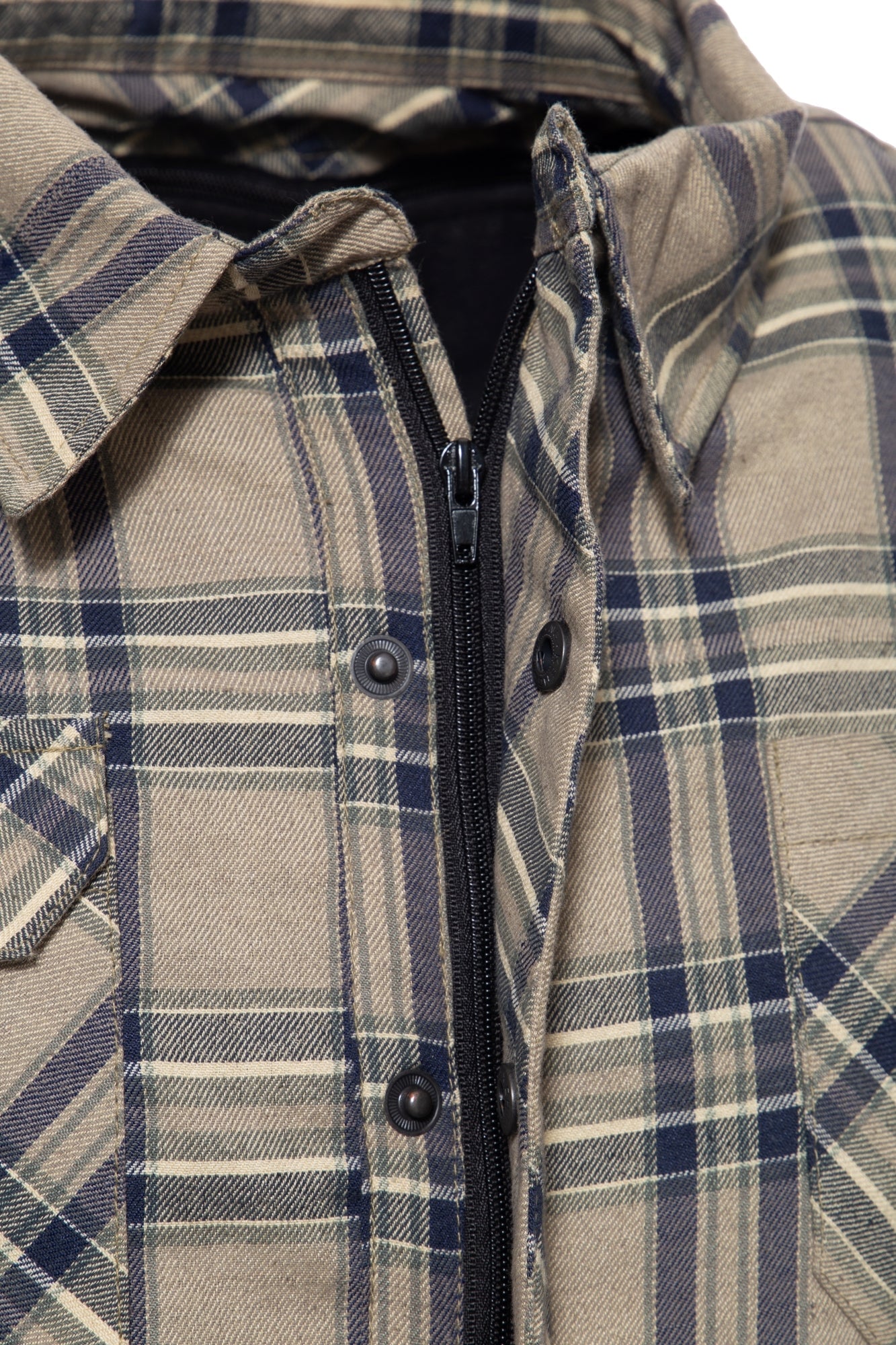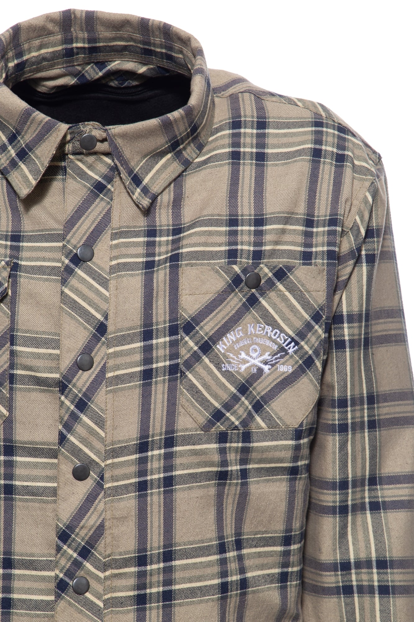 Dir schreibt keiner etwas vor, diesem Teil von King Kerosin auch nicht! Das Funktionshemd mit coolem Holzfäller-Karo kann nämlich als Jacke, oder ohne Innenleben als Hemd getragen werden. Das Hemd verfügt über einen klassischen Kragen und Manschetten mit Ärmelschlitzen, die mit einem Reißverschluss geschlossen werden können. Auch die vordere Mitte verfügt über einem Reißverschluss, der durch die Knopfblende mit Druckknöpfen verdeckt wird. Eine hochwertige Stickerei im Rücken und auf einer der Brusttaschen erweisen sich als echter Blickfang. Das Obermaterial besteht aus reiner, weicher Baumwolle, was zusammen mit dem bequemen Straight Fit für großartigen Komfort sorgt. Funktionalität steht hier großgeschrieben, denn das langarm Funktionshemd von King Kerosin verfügt über ein separates Innenfutter aus wasser- und windabweisendem Softshell, das ja nach Bedarf komplett per Reißverschluss herausgetrennt und wieder eingesetzt werden kann. So eignet sich die Funktionsjacke auch perfekt für draußen.