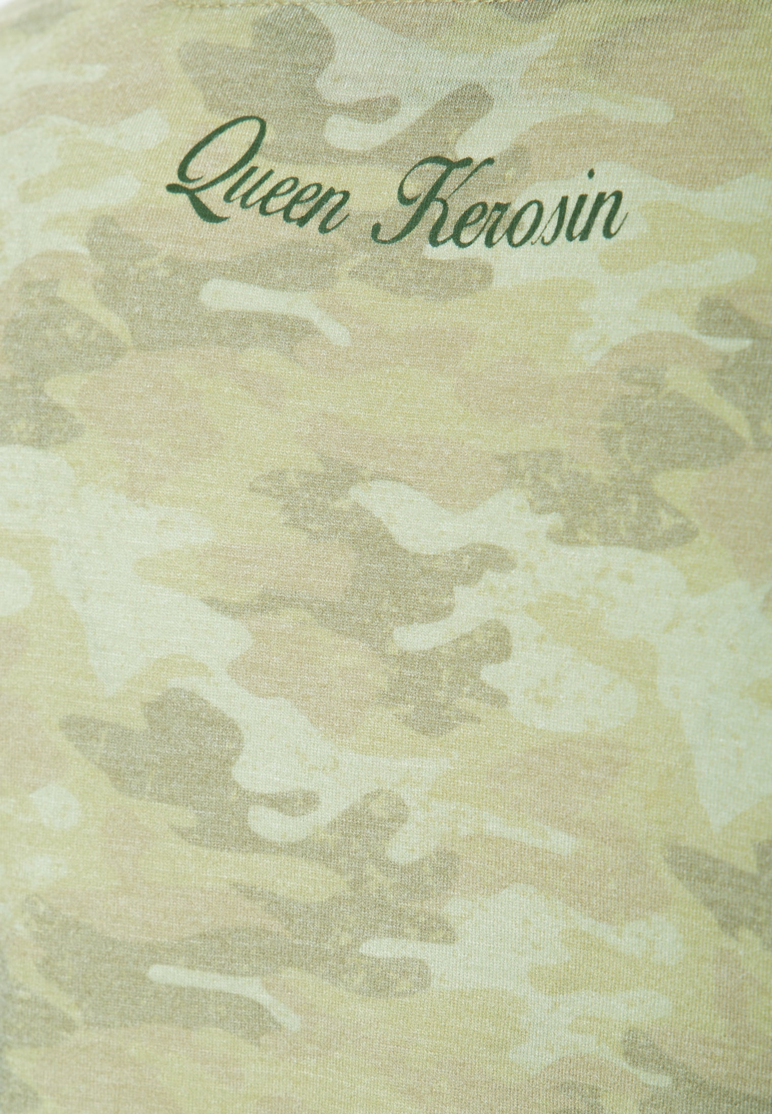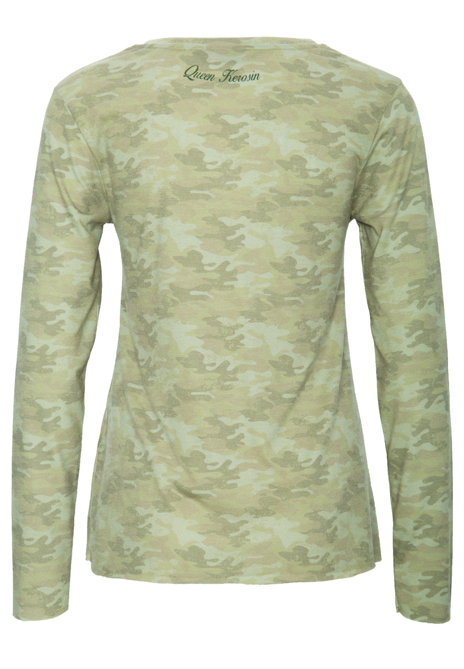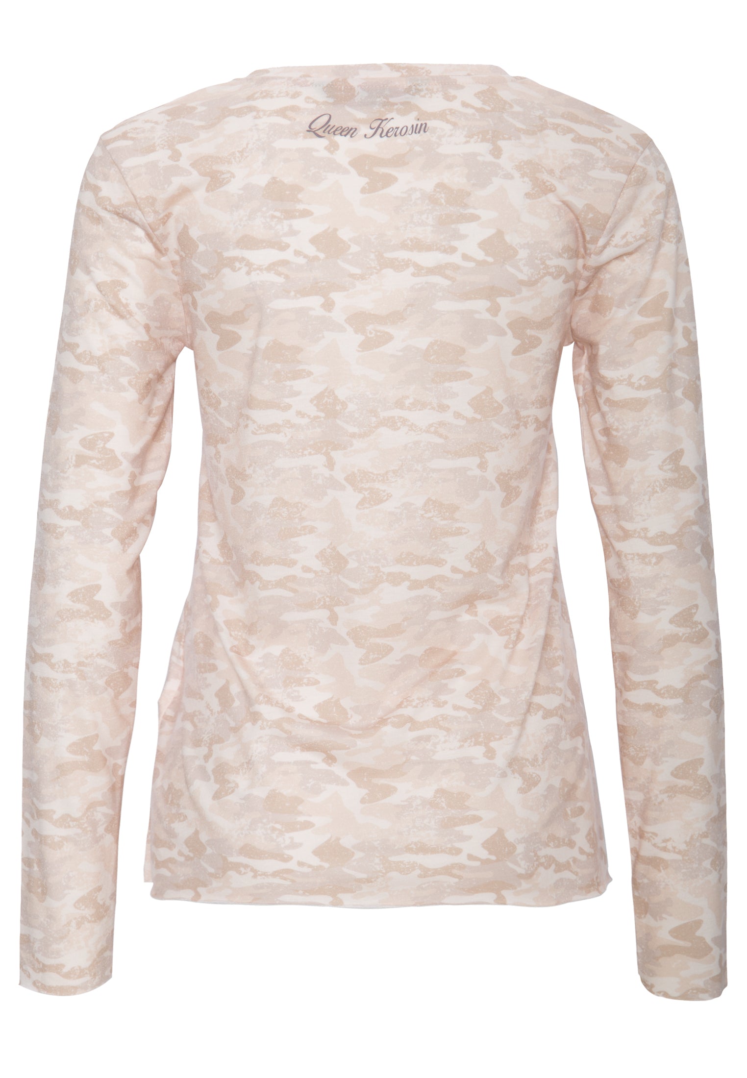 Das »born to love« Queen Kerosin Langarmshirt in hochwertigem Material-Mix begeistert durch eine weich-fließende Qualität und hohen Tragekomfort. Das leicht ausgestellte Modell, die offen gearbeiteten Abschlüsse an den Ärmeln und am Saum verleihen dem Shirt eine stylishe Note, die besonders gut in Kombination zu Jeans oder Shorts zur Geltung kommen. Der Print ist nicht nur mit Liebe zum Detail gestaltet, er setzt auch ein klares Statement »NO WAR, YES LOVE« Dieser Longsleeve von der Kultmarke Queen Kerosin ist ein absolutes Must-Have.