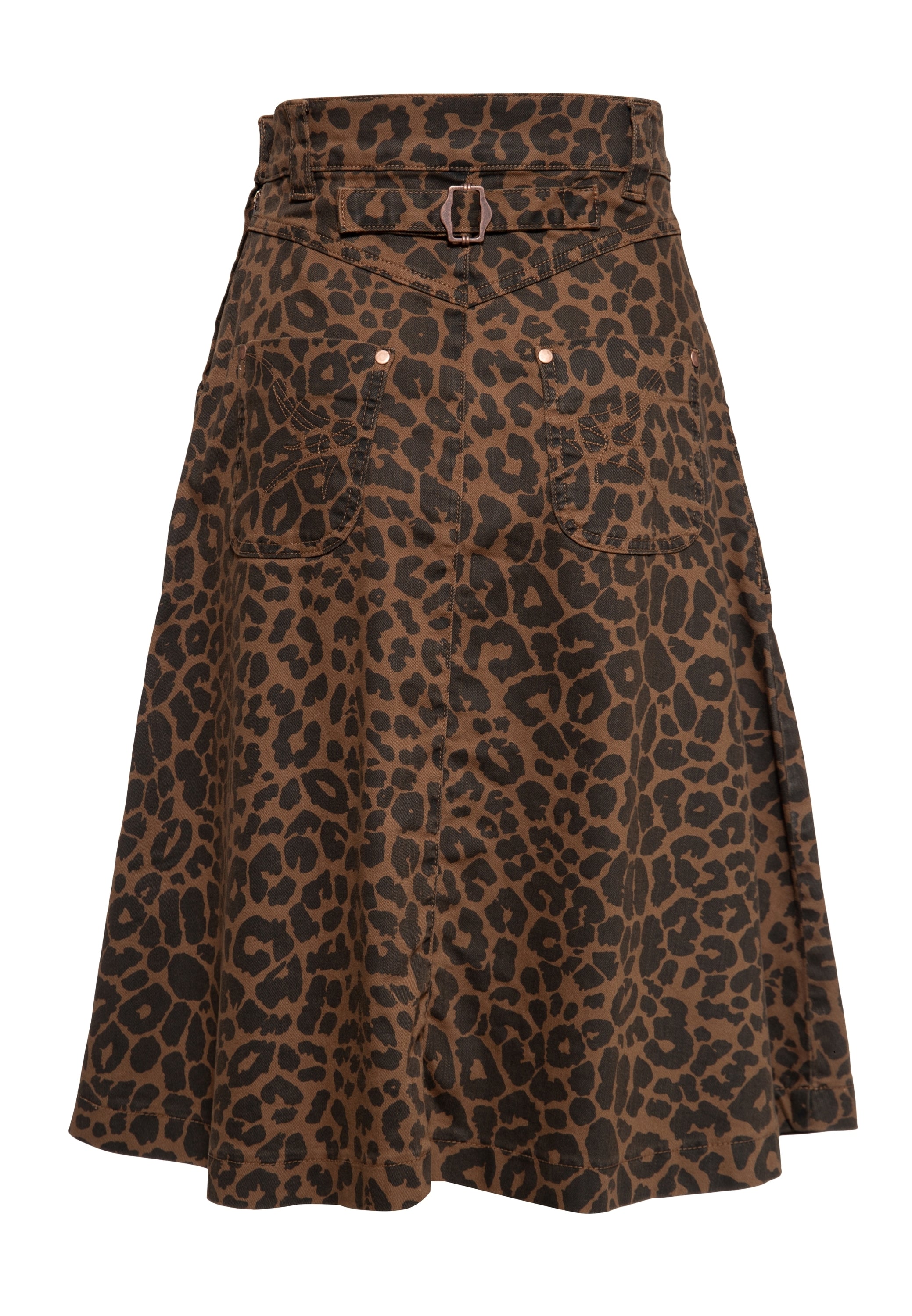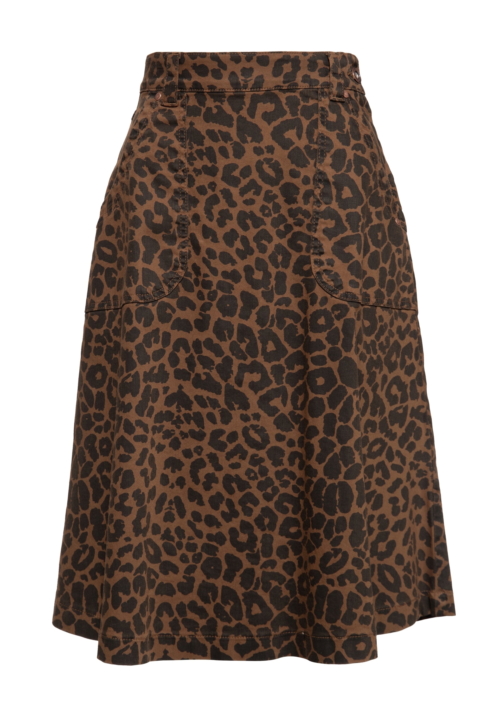 Tierisch schön und feminin wird es mit dem Queen Kerosin Vintage Swing-Rock mit wildem Leopardenmuster! Das elastische Denim-Material ist robust, hautfreundlich, langlebig und stellt bei der Reinigung kaum Ansprüche. Der taillierte Rock in A-Linie sitzt figurbetont eng in der Taille und wird weit zum Saum hin. Durch die Taschen in der Front und die aufgesetzten Gesäßtaschen mit Pinstripe-Motiven entsteht ein cooler Workwear-Look. Details wie der Cinch back und die dezenten Stickereien runden das Design gekonnt ab. Geschlossen wird der Rock mittels Reißverschluss in der Seitennaht. Zu einem engen Longsleeve oder Top mit Pumps entsteht ein toller Look für den Alltag mit kultigem Vintage-Chic.